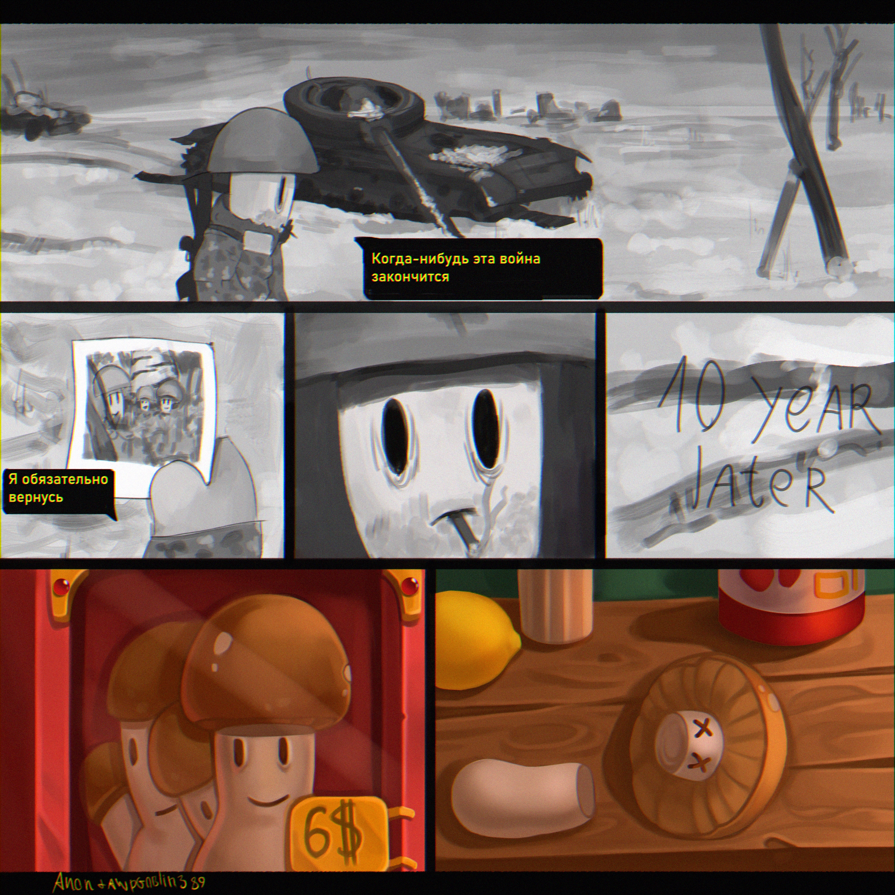 Это будет не особо длинный дневник про создание анимационного шортката. Шорткат про грибочков на войне. Однажды анон в рисовач треде, в /b зареквестил арт по грибочкам во второй чеченской, меня увлекла эта идея. Последнее время я пытался превозмогать в афтер эффектсы, моушн-дизайн, анимацию и прочее.