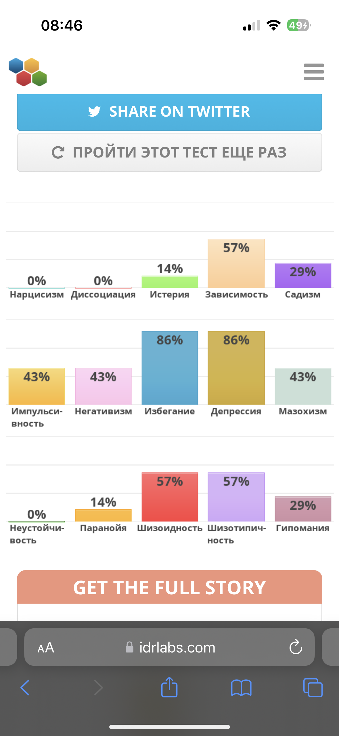 Прикрепил фотку какого-то теста. Раньше я думал, что у меня избегающее расстройство, которое сложно лечится, но переключился на социофобию, т.к. у меня нет физической тряски как у тревожников. ОКР страдал много лет, но с годами проходит.