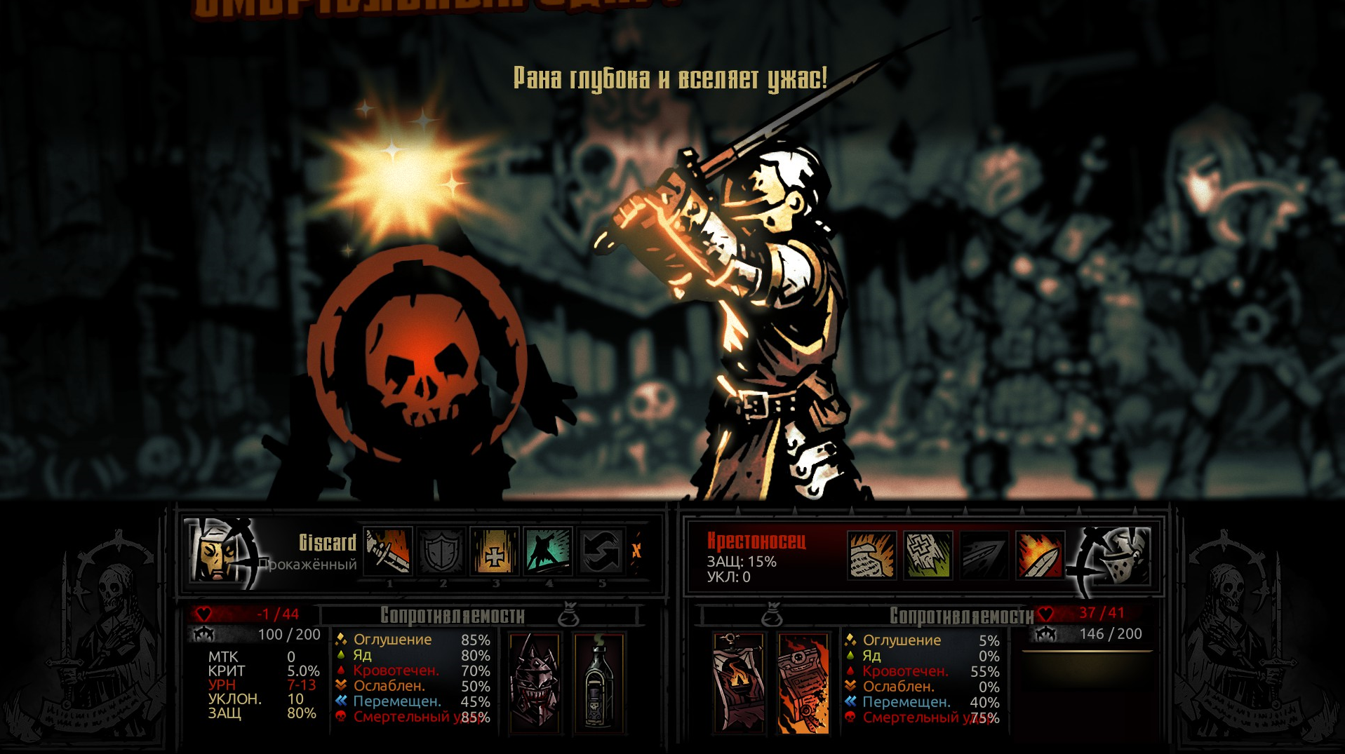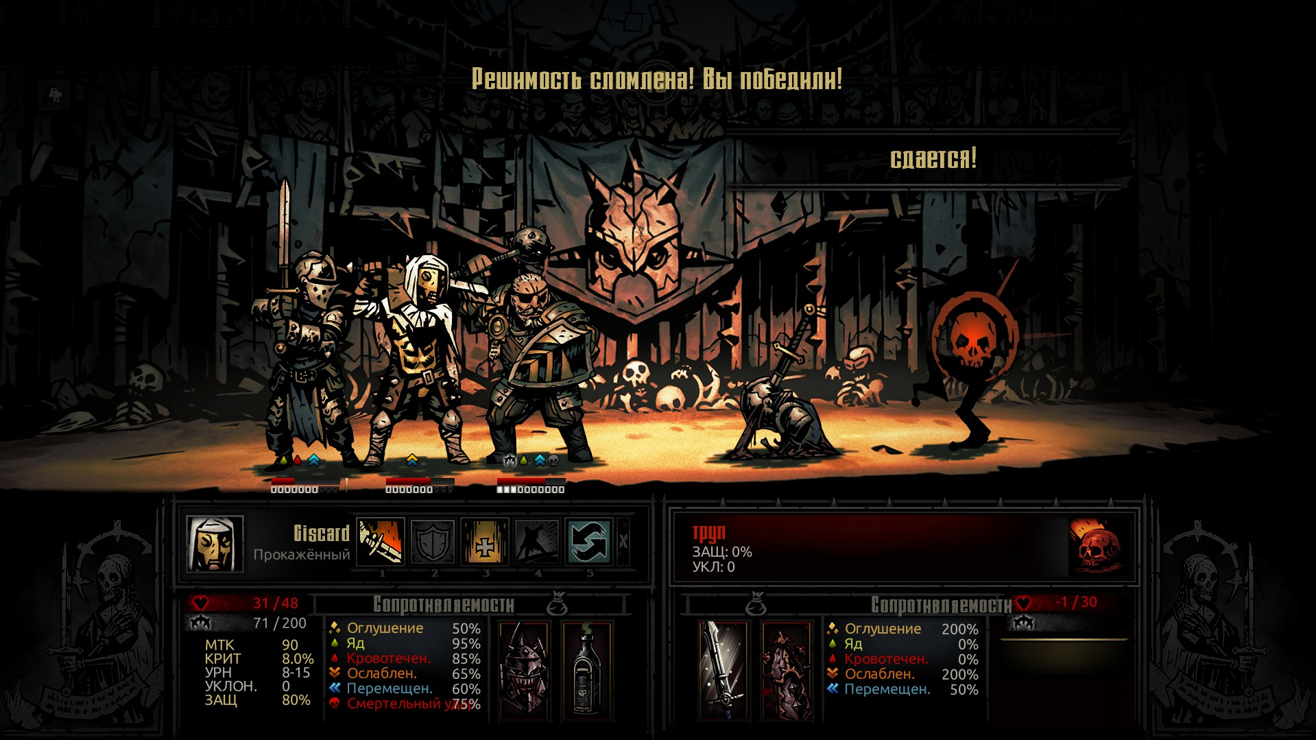 Когда-нибудь игра мне перестанет отключать возможность везения в единственных возможных путях победы. Но это потом. Сначала дать воодушевление крестоносцу. Потом перед убийством, отодвинуть психозом наемника, чтобы он не смог убить. И все. Зачем играть это 10 минут если я проигрываю не потому что ошибся или что-то не учел, а потому что...