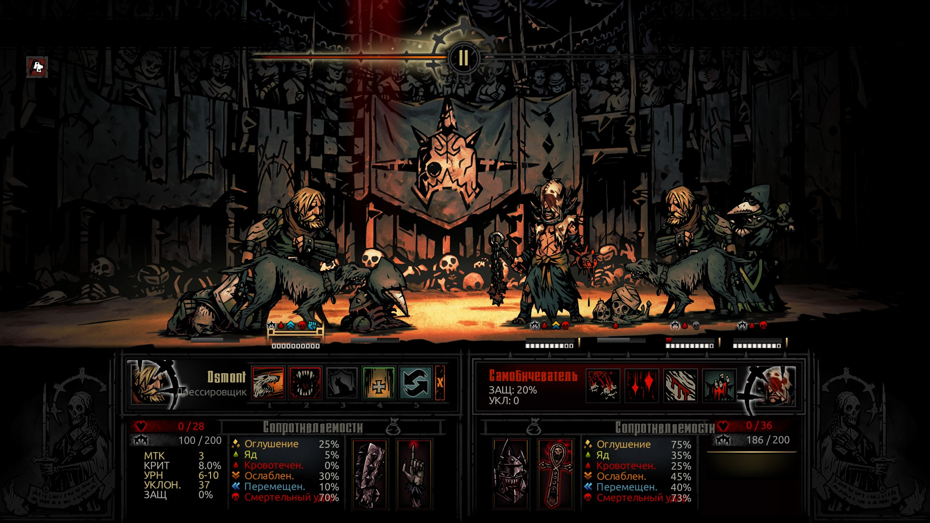А вот тут мне решили отключить сопротивления. 5 оглушений - ни одного сопротивления 5 перемещений - ни одного сопротивления 2 кровотечения - 1 сопротивление.