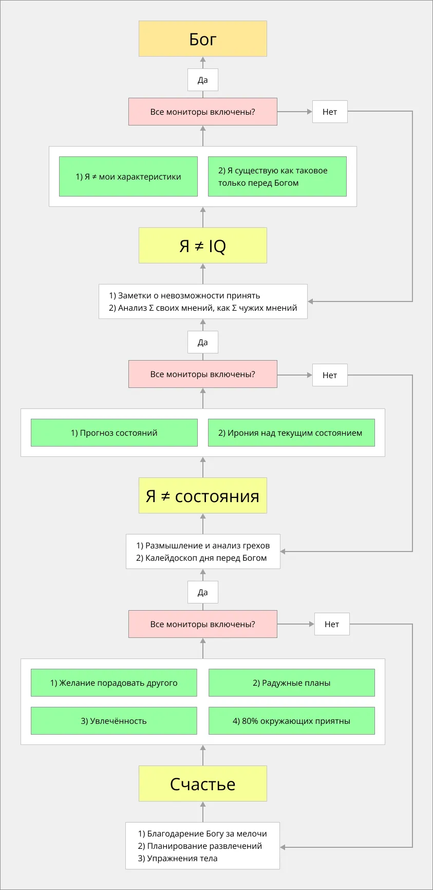 Хорошо сегодня, есть воодушевление. Я думал, что для какого-то позитивного изменения в жизни мне не хватает воодушевления, увлечённости, но это оказалось неправдой. Воодушевление, как и скуку, я просто переживаю сами по себе, а не использую их как топливо для сторонней цели. Неприятные состояния так же не сподвигают меня к изменениям, как и приятные, слишком часто и бессистемно они сменяют друг друга.