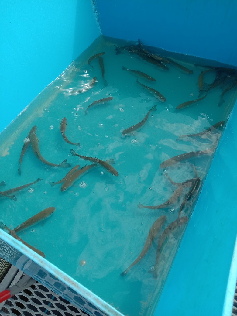 Покормил мальков, сегодня хорошо едят. Вчера ели плохо, главный говорит, что это из-за железа. Совершил обход по садкам, достал дохлого осетра и дохлого карпа.