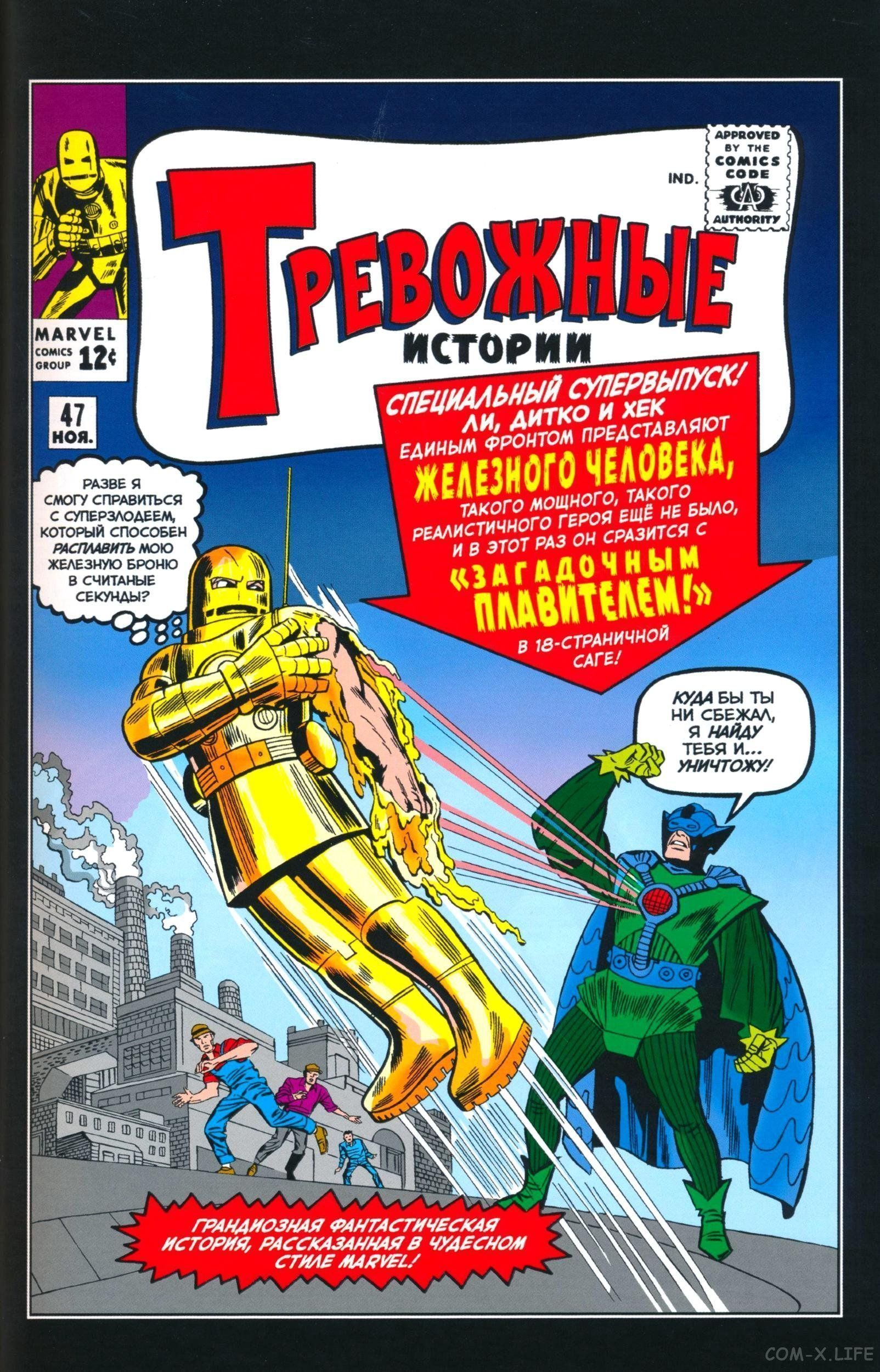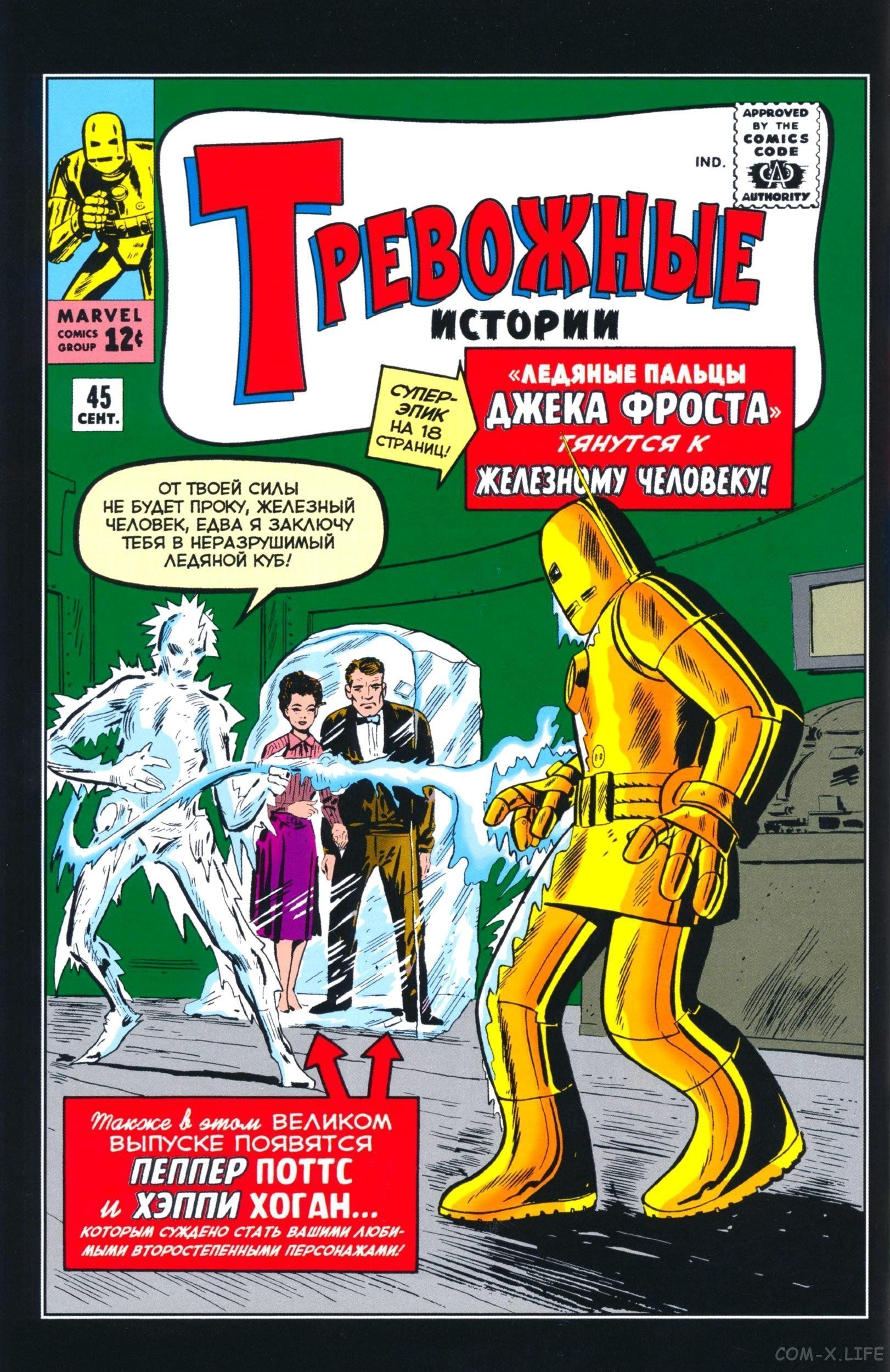 Путешествие в тайну том 1 #97 Дон Блейк страдает от своей любви к медсестре Джейн,но ему нужно вновь стать Тором и сразиться с Лавовым Человеком,вылезшим из вулкана. Победу омрачает тот факт,что она ушла к другому доктору и не только по работе. Тревожные истории #46 Электро-гений из СССР Ванко под именем Красный Динамо бросает вызов Железному Человеку,но переходит на его сторону от проклятущих коммунистов,клюква-клюквенная.