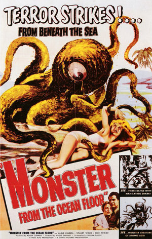 Посмотрел "Монстр со дна океана (Monster from the Ocean Floor США 1954)." Девушка Джули рисовала на берегу и встретила мальчика,который рассказал ей о монстре в местной бухте,утащившего его отца,чему она не поверила. Позже,она познакомилась с морским биологом и стала свидетельницей странного исчезновения человека в воде. Джули заинтересовалась этой темой и после разговоров с местными сама увидела монстра с одним светящимся глазом. Херня,очень мало показали само чудовище,да и есть странный момент,что по какой-то там легенде нужно принести ему в жертву женщину и ещё,что чудовище появилось после экспериментов,тогда ведь легенда отпадает. 313 фильм за этот год.
