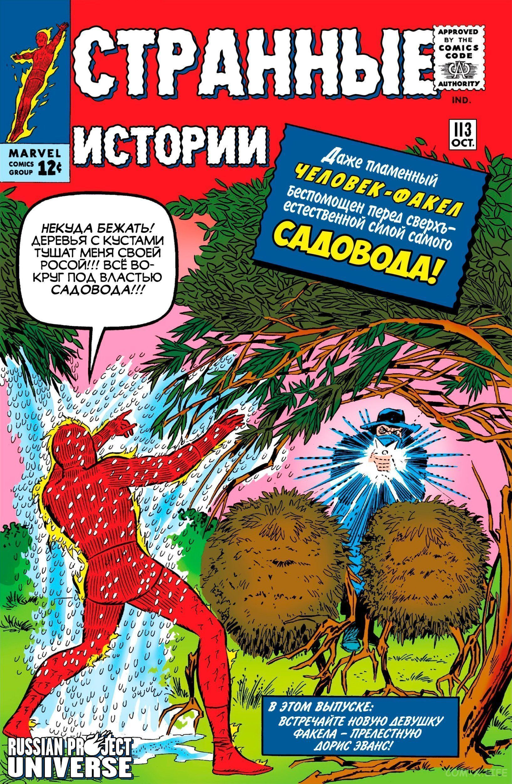 Странные истории том 1 #113 Человек-Факел сражается против Садовода. Прикольный злодей,он наделяет растения интеллектом с помощью своего изобретения и управляет ими. Фантастическая Четвёрка том 1 #19 Четвёрка отправляется в Древний Египет с помощью машины Доктора Дума за травой от слепоты для Алисии и сталкивается с ещё одним путешественником во времени,который одним выстрелом своего оружия подчиняет команду.