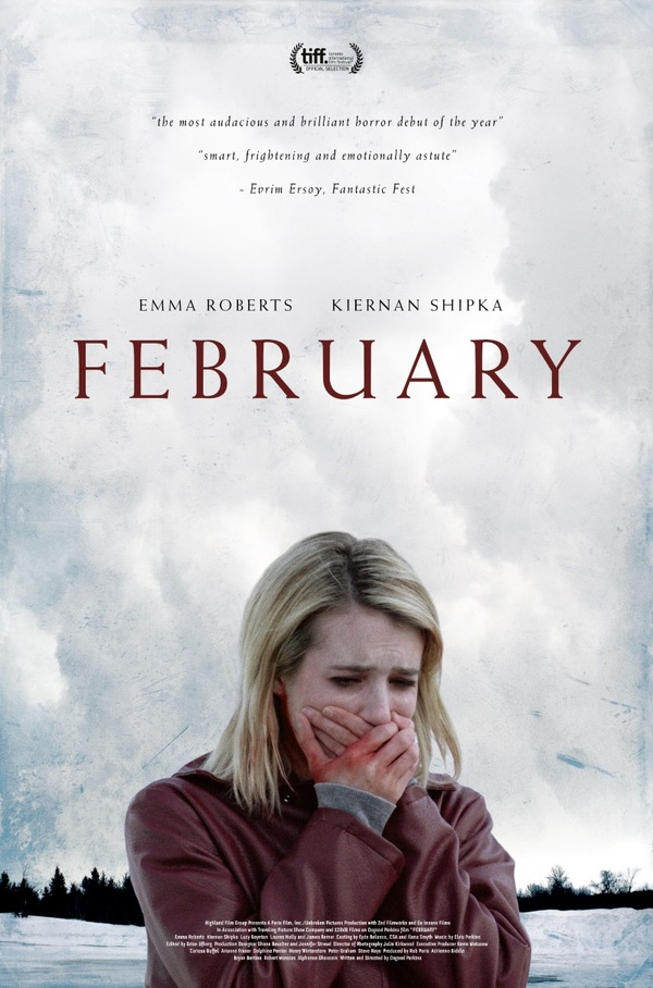 Посмотрел "Февраль (February Канада,США 2015)." В фильме есть линия о двух девушках-подростках,оставшихся на зимние каникулы в религиозном интернате и о мужчине,который едет с женой в другой город,но по пути поздно вечером встречает девушку на автобусной остановке и предлагает её подвезти. Эти истории переплетаются. Видно,что старались сделать интересный сюжет и красивую картинку. Но если выглядит всё довольно стильно,то сюжет хромает и представляет собой смесь из семейных драм,дьяволопоклонничества,убийств и непредсказуемых ситуаций. Получилось необычно,но плохо,особенно под конец. 321 фильм за этот год.