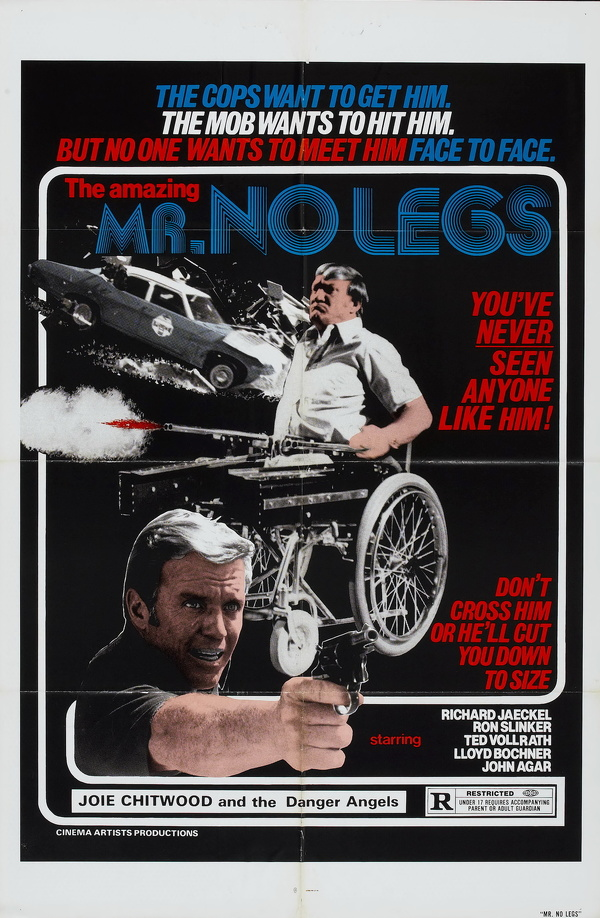 Посмотрел "Мистер Безногий (Mr. No Legs США 1978)." Полицейский Чак расследует дело группировки,занимающейся торговлей наркоты и ждущей новую партию. За всем стоит Д`Анджело,но к нему ещё надо подобраться. "Мистер Безногий" один из его людей,действительно безногий. Но его инвалидное кресло набито оружием,да и драться он умеет. Это выглядит очень смешно и главное достоинство фильма в нелепых боевых сценах. 324 фильм за этот год.