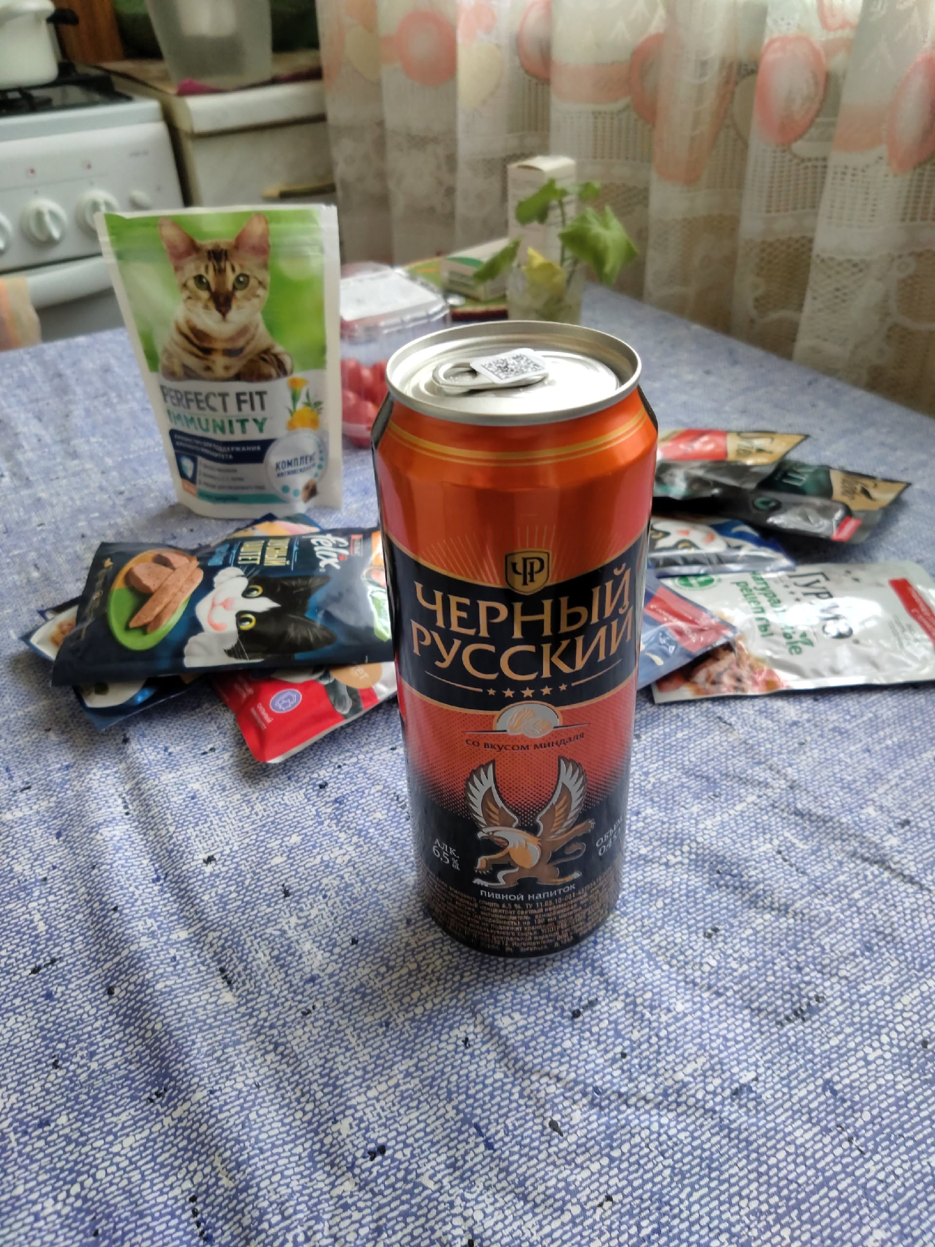 Вот кис-кисычу уже 6 лет исполнилось,по традиции купил вкусненького. Ну и выпил за здоровье лохматого "Чёрный Русский",впервые пробую. Похоже на смесь кофе и амаретто.