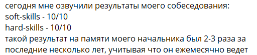 >>779808 Как ты нашёл работу за пару недель? Через знакомства? У меня первый год даже собеса не было ни одного. За последнее время удалось выбить несколько. Говорят "мы вам перезвоним". Не всегда дают обратную связь даже после собеса, но когда дают, то заявляют что всё, мол, хорошо, но не хотим брать удаленно джуна без опыта работы. Хоть ты лопни. Один раз были готовы предложить стажировку, но без оплаты. А если бы я прошёл её, то работу по ГПХ. Но я конечно отказался. У меня с этим поиском работы самоуважения и так никакого, готов хоть за мрот, но за бесплатно это уже совсем сюр, я что крепостной крестьянин? Хотя даже у крепостных был доход, а это просто издевательство какое-то... Вообще некоторые вакансии на хх очень интересные. По описанию видно, что это маленькая контора (т.е. вариант что у них просто бесконечно растёт команда мы не рассматриваем). Мне они ставят автоматические отказы, даже на собес не приглашают, зато их вакансия появляется снова каждые две недели/месяц/два. И так продолжается снова и снова. То есть они либо всех бракуют и ждут принца, толи разводят на тестовые, уж не знаю занимается ли этим кто-то, толи берут и увольняют сразу, ну либо их джун сам убегает. Кто их знает. Откликаюсь не только на хх, мониторю тгк, хабр вакансии (там для джуна вообще голяк, может месяц ничего не быть, да и на хх джун вакансий на самом деле очень мало, я успеваю не напрягаясь откликаться на все), пишу иногда на почту напрямую компаниям. Ещё до создания треда в 2023 году, была крутая вакансия, я откликнулся, но мне пришел отказ, не автоматический внезапно, а мол "Всё круто, но вот не хватает тебе того и того. Как подтянешь - приходи". С тех пор я им иногда пишу на почту, но они не отвечают и вакансий от них больше не было. Уж не знаю что с ними, всё хорошо или всё плохо.