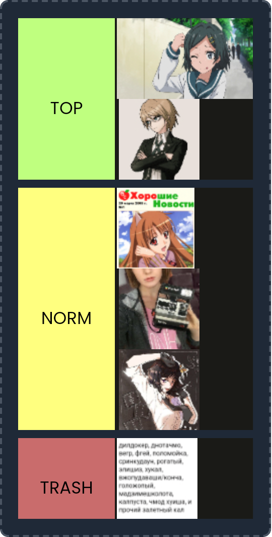 >Я вот нигде в интернете не сижу кроме /rf, поэтому не знаю что там у нормисов считается за темку