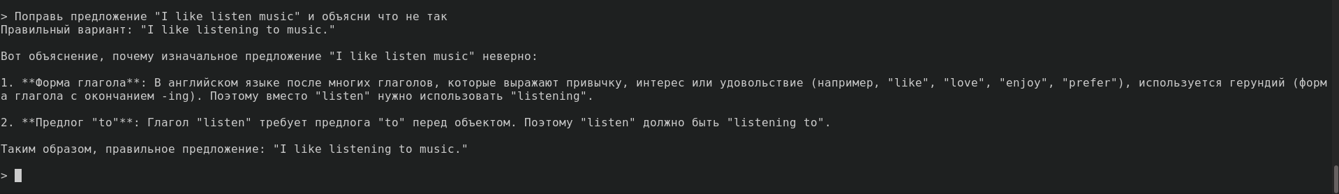 Решил проверить свой уровень перед началом и прошел тест на efset, однако в конце он потребовал регистрацию для получения результатов ((. Ну и ладно, и так понятно, что у меня все плохо - я почти ни один вопрос не понял. Прошел тест на словарный запас на my.vocabularysize.com - не менее 5700, пишет сайт. Очевидно, это неправда, скорее всего у них плохой алгоритм подсчета, а я просто, так уж вышло по случайности, знал пару не очень популярных слов. Что ж, по какой-либо шкале не получится отслеживать прогресс, поэтому оценка будет субъективной. Грамматику, скорее всего, буду изучать по мере необходимости, а пока пройдусь разок по базовым правилам, без необходимого словарного запаса в них пока мало смысла. План таков: 1. Любой контент смотреть только в оригинале (на самом деле я уже так делаю, т.к. нравятся натуральные голоса актеров), разбирая и записывая незнакомые слова и интересные фразы. 2. Читать, прибегая к переводчику в крайних случаях. 3. Самое интересное. Буду рассказывать истории...на английском! Но как-нибудь потом. А еще я решил использовать языковые модели. В итоге я выбрал phi4-14b с квантованием в 4 бита (пробовал и 8 - особой разницы не заметил). Увы, он не помещается в VRAM, которой у меня лишь 4гб, поэтому все выполняется на CPU со скоростью 3-4 токена в секунду. Можно делегировать обработку части слоев на GPU, но это только ухудшает производительность. Обычный llama.cpp работает с терпимой скоростью на процессоре, но если собрать ее c CUDA бэкендом, то на GPU, если вся модель влезает в видеопамять, работает очень шустро, как и ожидается, но если не влезает, или просто указать -ngl 0, то работает в разы медленнее обычной версии. Все дело в том, похоже, что CUDA версия собирается без AVX инструкций, потом стоит разобраться. Есть phi4-mini, которая может полностью запускаться на видеокарте, но она ооочень глупая, несет бред. А еще проверил deepseek-r1-14b - неплоха, но отвечает долго, ведь это размышляющая сетка, в отличие от phi, которая отвечает коротко и по делу. Ну вот и все, сегодняшний день в основном ушел на подготовку и составление плана.