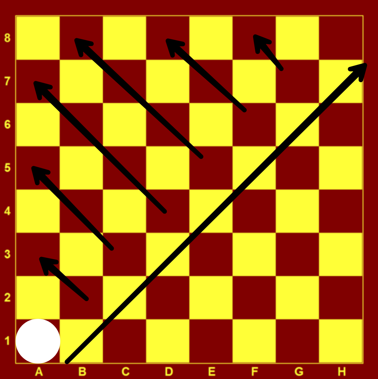Доску можно разделить на 7 вот таких вот полей(2 из которых будут отличаться). Каждое поле можно интерпретировать как пик 2. То бишь, дорожка из 8 ячеек.