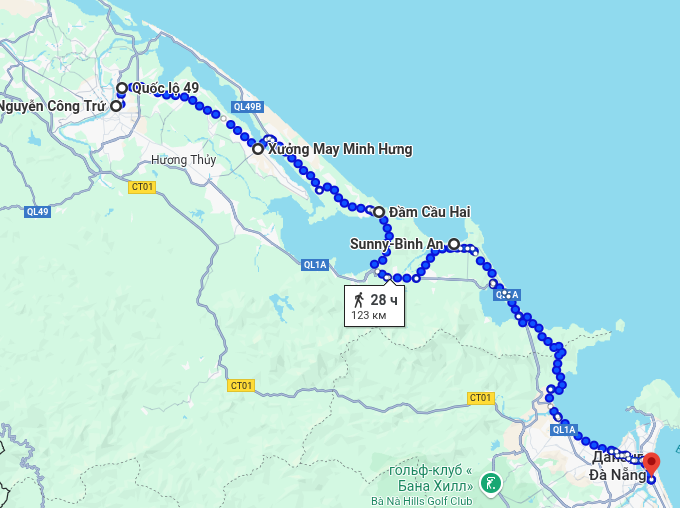 Решил пройтись до города Дананг. Это 28 часов пешком. Без мобильной связи (её отключили за день до этого) и с 35 000 донгов (140 рублей) в кармане. За спиной рюкзак с ноутом и парой футболок. Решил так: если по пути люди будут предлагать поесть, попить, поспать — отказываться не буду. А если не пригласят — буду спать на пляжах или под мостами. Отметил такие места на своём маршруте.