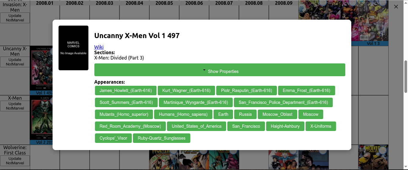 Вообще люди пытаются составить хронологии на сайтах. Типа какой комикс за которым идёт, но они все в виде горизонтального списка. А тут таблица с месяцами и названиями тайтлов.