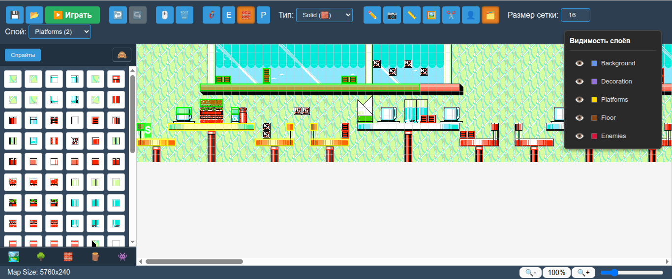Продолжаю делать редактор платформеров. Чтобы можно было проходить уровни из одних игр. Персонажами из других >>802212 >>820520