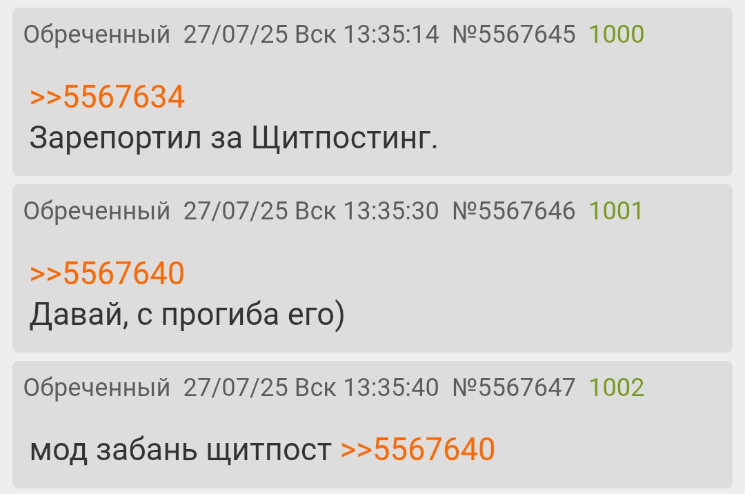 Я конечно не смотрела нашумевший сериал "игра в кальмара", но насколько понимаю, раздел /rf/ сейчас превращен модерами в подобие этой игры. Или как в фаллаут, где убежища использовались для экспериментов над людьми. Если это осознанно, то мой респект, потому что идея забавная, даже не смотря на то, что меня оттуда вывели.