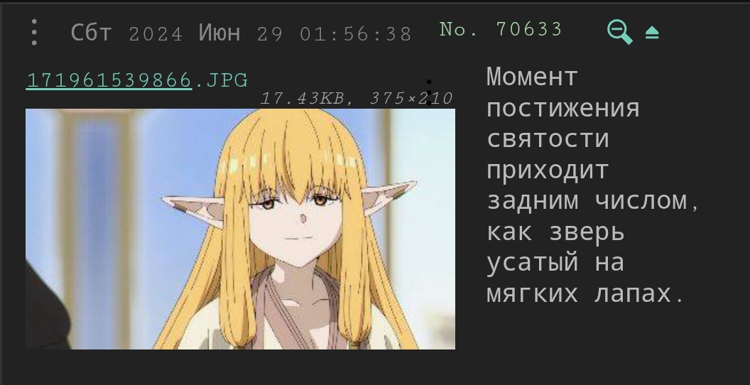 >Будем честны, местные хикки месяцами не выходят из дома только и исключительно для того, чтобы похвастаться этим в интернете Эта полуироничная фраза стала моей последней в разделе /rf/, за неё мне достался бан (subnet) до 1 октября. Уже не первый случай, так или иначе, охота на мои посты длится ещё с весны прошлого года. Но, пожалуй, на этом моменте до меня наконец-то стало что-то доходить... Именно с этого момента я хочу начать свою историю, длинною в 15 лет и перенестись в 2010 год, когда я, отхватив очередной бан в /b/, открыл для себя то самое "Убежище", постепенно сместившее все жизненные приоритеты в одну точку — в постинг. В качественный постинг. И да, стоит признать, я часто травила других постеров за их некачественный постинг, суть в том, что они даже не старались. Ежедневно, без перерывов и выходных, менялись поколения вниманиеблядей, менялась моча, названия регулярных тредов, в последствии, менялись и борды, в частности, /asylum/, который тянет на отдельную тему, к которой я возможно, ещё вернусь, неизменно за это время было одно — мы делаем т.н. движуху, вниманиеблядское шоу, порой довольно провокационное и которое, наверное и не нужно было никому, кроме тех, кто его делал. 15 лет, сейчас мне без малого 40 и на вопрос: потратил ли я чуть меньше половины своей жизни впустую, на сайт 2ch, мой ответ без всякого сожаления будет утвердительным. Возможно, в связи с глубоко шизоидными и местами интровертными чертами характера и мне этого времени и сил не жалко. А если и есть о чём сожалеть, так это о отношении. И нет, не постеров, с ними я до сих пор в состоянии поквитаться без всяких обид, о отношении администрации. Как будто бы я вред наносила всё это время вашему ресурсу. Просила ли я когда-нибудь о каких-то преференциях — да бомже упаси, никогда в своей, местами нелегкой, жизни ничего не просила, просто хотелось бы писать то, что думаю, в момент, который считаю нужным, в месте, которое сама считаю для этого подходящим. И просто не получать за мнение, или за определенный ip да, вам не показалось, баны на нереальные сроки, по сути, всё что я хотела, это корректной работы модераторов, ну это же вроде как элементарно, оказалось не всё так просто. И вот, пожалуй, решающей, но отнюдь не очевидной причиной попадания меня "в немилость" нынешнего мод-состава стал как раз мой немалый и непрерывный стаж нахождения в разделе. Я долгое время абсолютно искренне не могла понять, за что меня банят и как постить так, чтобы эти баны не ловить. Только вот сейчас, после полтора года борцунства, кажется стало что-то доходить.. Слоган "раздел для хикк" в голове "нового мод-состава" перестал иметь хоть сколько то ироничное значение. Почему так долго для меня и доходило, потому что негласно это всегда был полустёб. Ну какие хикки, хикки на территории пост-совка это анекдот сам по себе, ну в смысле, всё равно жить то на что-то надо, или по крайней мере придется, да? А тут получается отнеслись всерьез, более чем, как к какой-то религии и тех долбоёбов, которые годами, местами нелепо, но корчили из себя последователей японской субкультуры, которых годами по праву считали не более чем долбоёбами (по типу ДК, Кон, Алиса), сейчас искусственно и с помощью банхаммера наделили неким статусом "хозяев доски". Да и ладно бы, если бы долбоёбы не были сами собой и сразу, почувствовав уринальный запашок, не стали буквально 