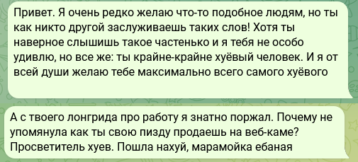 Вообще на самом деле я действительно редко что-то подобное пишу особенно в адрес бывших. Хоть и не со всеми расставался красиво, но и свиньей однако быть не стоит. Но данный человек действительно заслужил по многим причинам