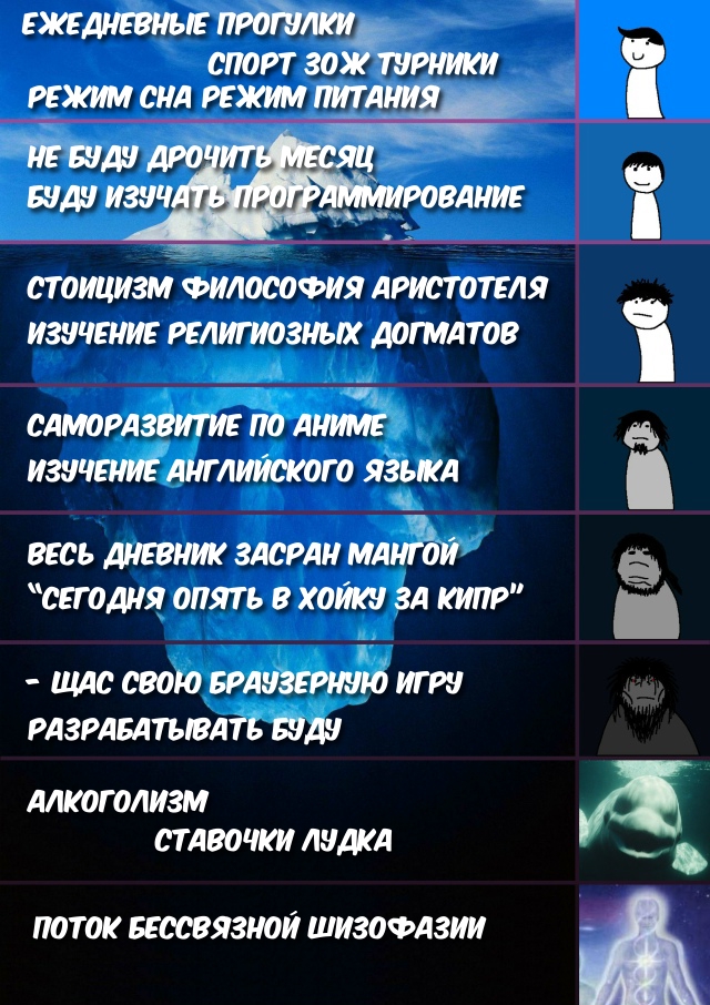 Естественно к делу я подходу довольно серьёзно. Поэтому с завтрашнего дня собираюсь ходить на турники, учить английский, не дрочить минимум год и на полученном запасе тестостерона активно вкатываться в программирование, занимаясь по 19-20 часов в день