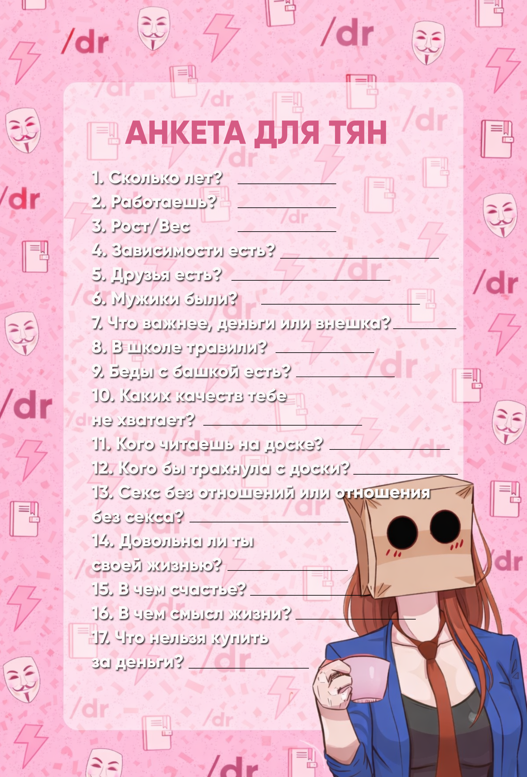 А можно мне позвать кого-то не из /dr? Основная идея собрать людей именно с данной доски, но если человек адекватен, то можно. Но только если ваш знакомый не застрял где-то в 2010 и он до сих пор считает что все двачеры омежки, перед которым он будет агрессивно двигать тазом и рычать. В таком случае не стоит.