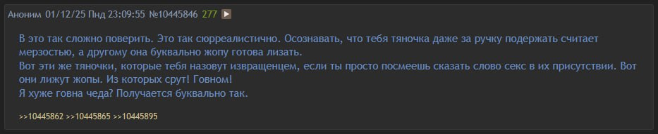 А что случилось с вашим тредом в сельдятнике? Чем вас не устроило общество сис, что вы опять прикатились сюда? Не то чтобы мне было не всё равно. Этот раздел прогнил и в нём не осталось ничего кроме страданий, так что сидите тут на здоровье, разрешаю. Просто любопытствую, что могло пойти не так в раю без хуемразей?