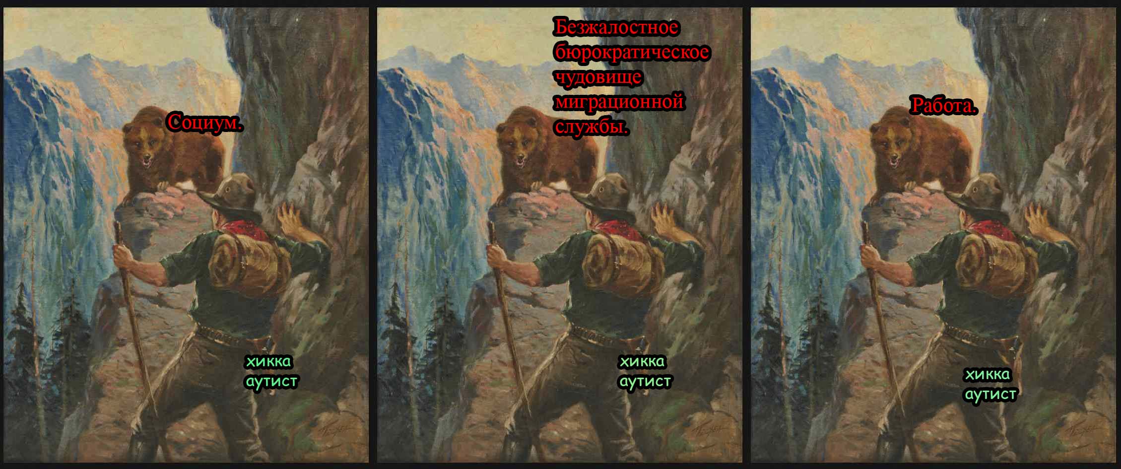 Как и куда эмигрировать хикке аутисту? без денег, без работы, без образования. В какую страну можно прийти с рюкзаком, построить шалаш в лесу и ловить рыбку и зайцев, собирать грибы - ягоды, чтобы ни одного человека на километры вокруг? так то и тут было бы идеально, если бы не орки, война, мобикубики, репрессии, запрет интернета, сворачивание капитализма и голод на горизонте.