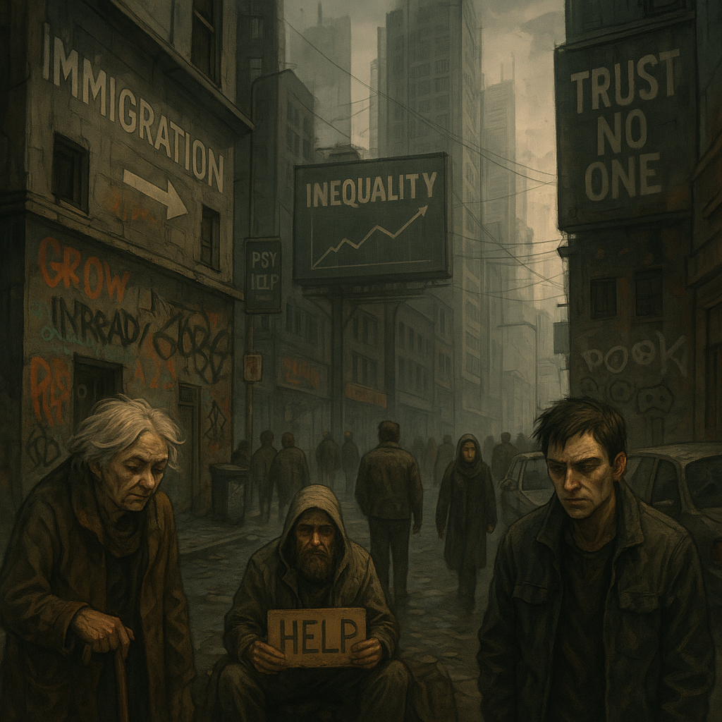 С конца нулевых уровень жизни в западных странах в основном проседает. После пандемии это еще и ускорилось. Проблемы с жильем у среднего класса, с мигрантами, повсеместный воукизм, старение населения, депрессии у каждого третьего. Даже если напрямую лично и не затрагивает, то окружающая все большая шитхольность радовать не должна.