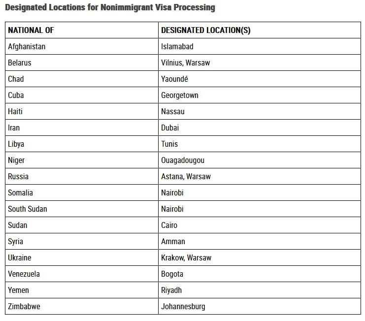 Госдеп ужесточил правила определения консульства для прохождения интервью. Резиденты РФ и РБ на визы DV могут пройти интервью ТОЛЬКО в Варшаве. На неиммиграционные - еще и в Астане.