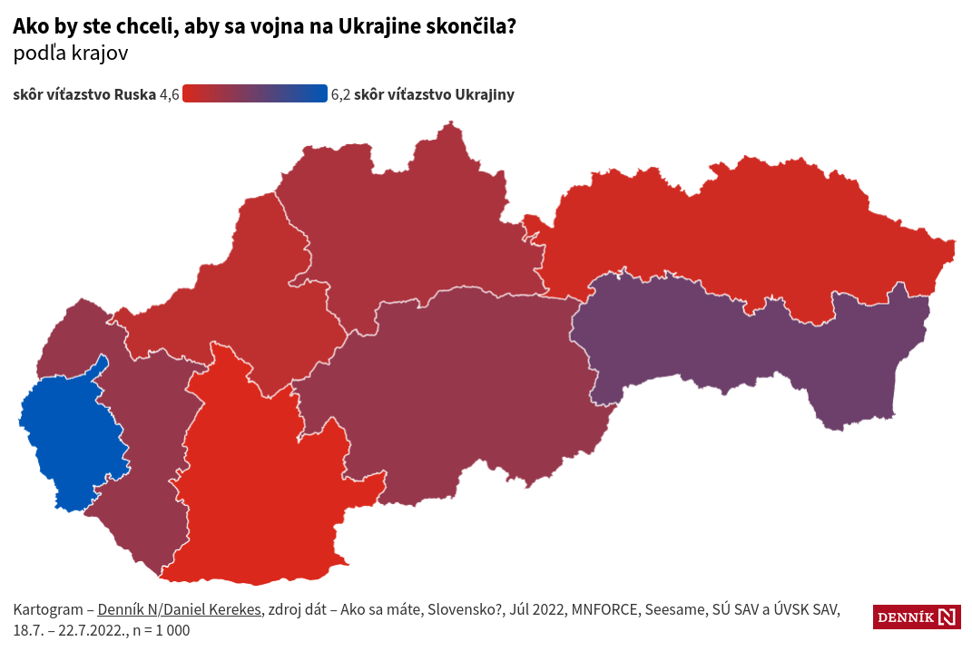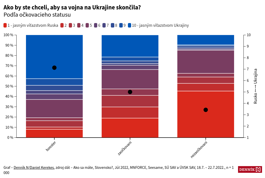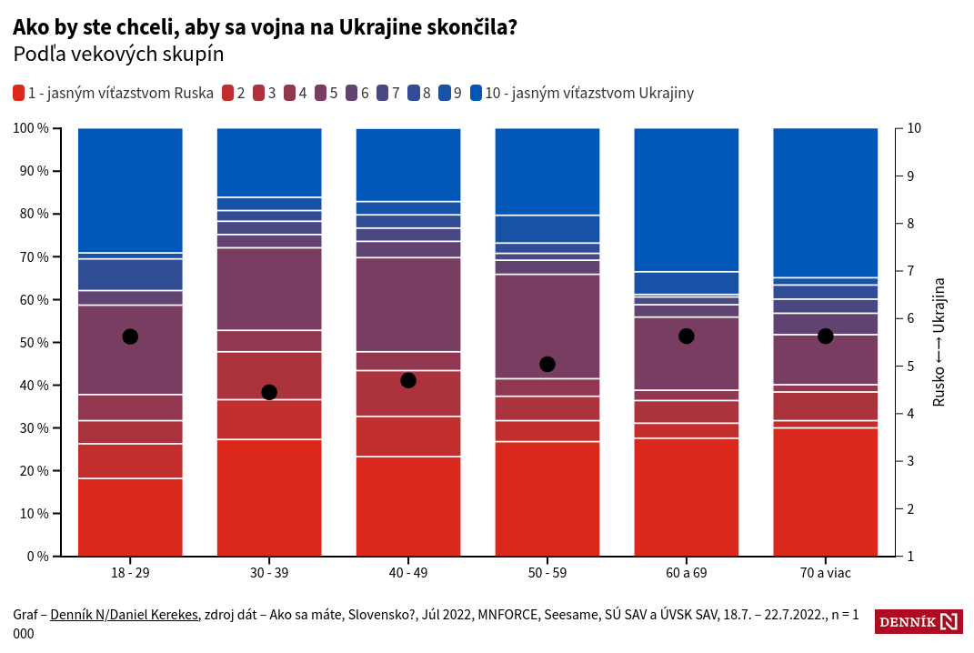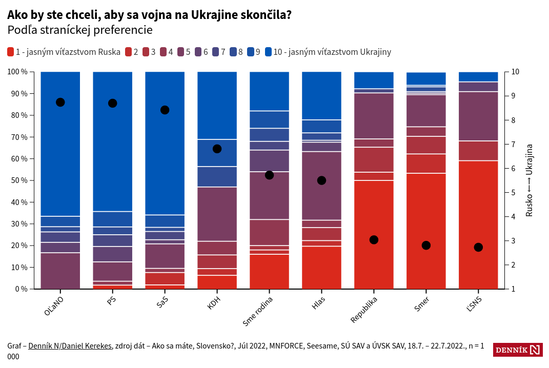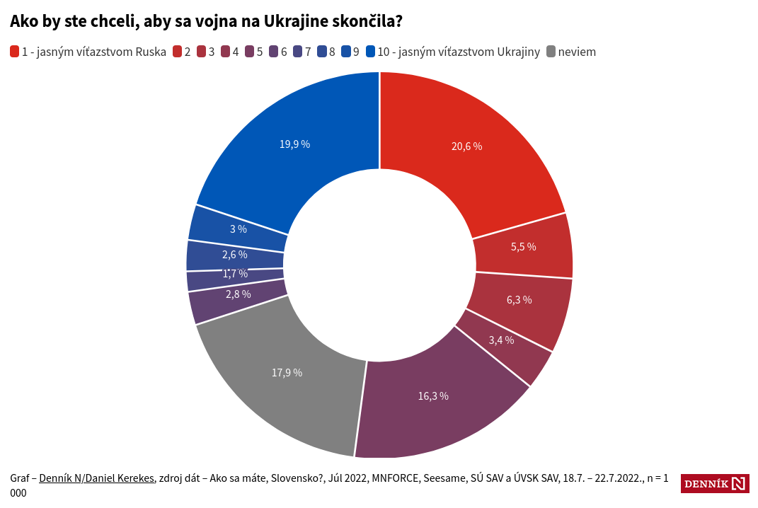 Словакам задали такой вопрос: Как вы бы хотели чтобы война в Украине закончилась? Среди ответов были: Однозначной победой России (Красный цвет) или однозначной победой Украины (Синий цвет на графике), ну и небольшие градации. Результаты можете наблюдать на скринах.