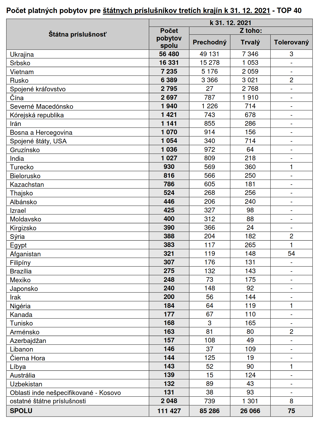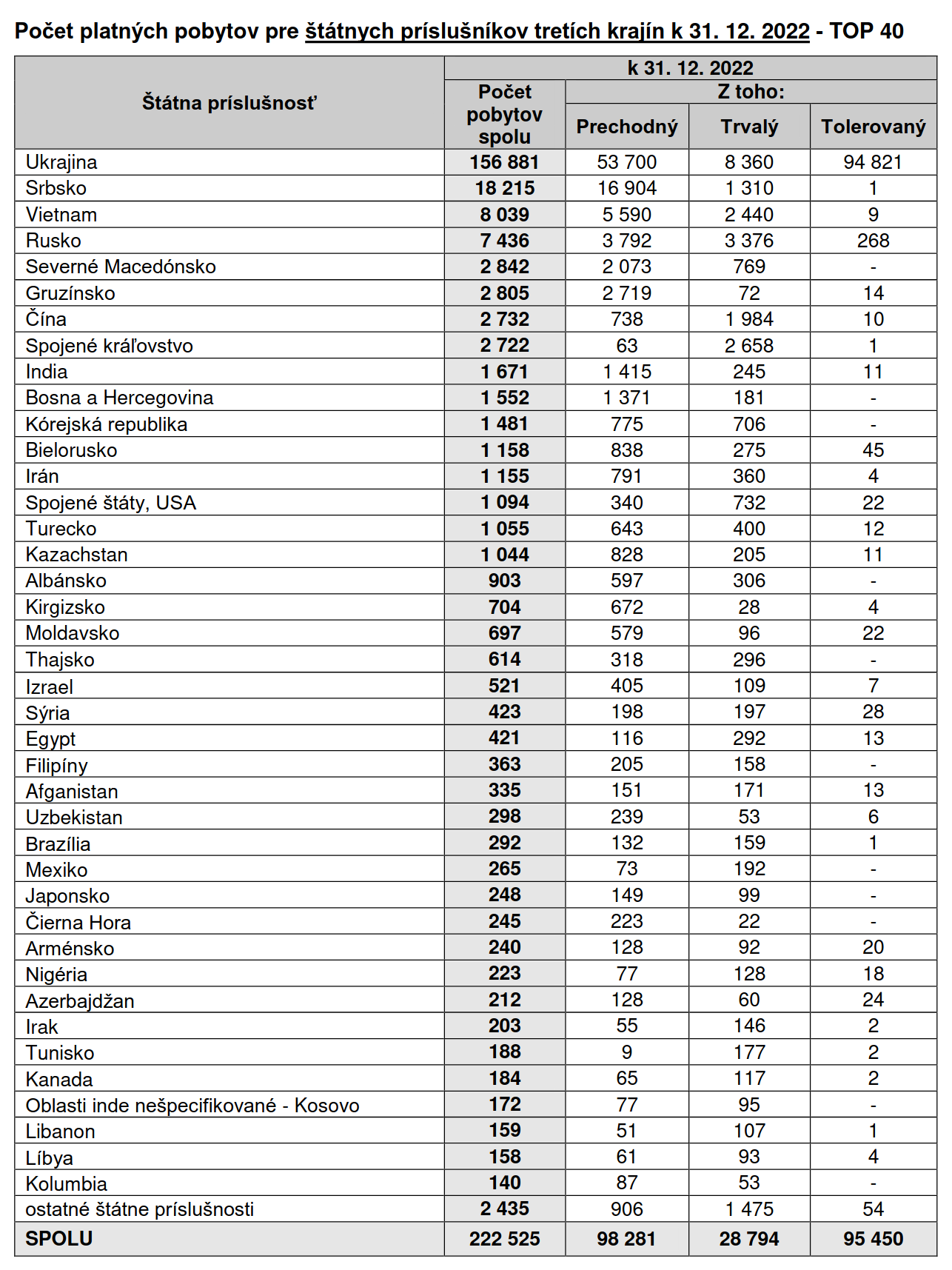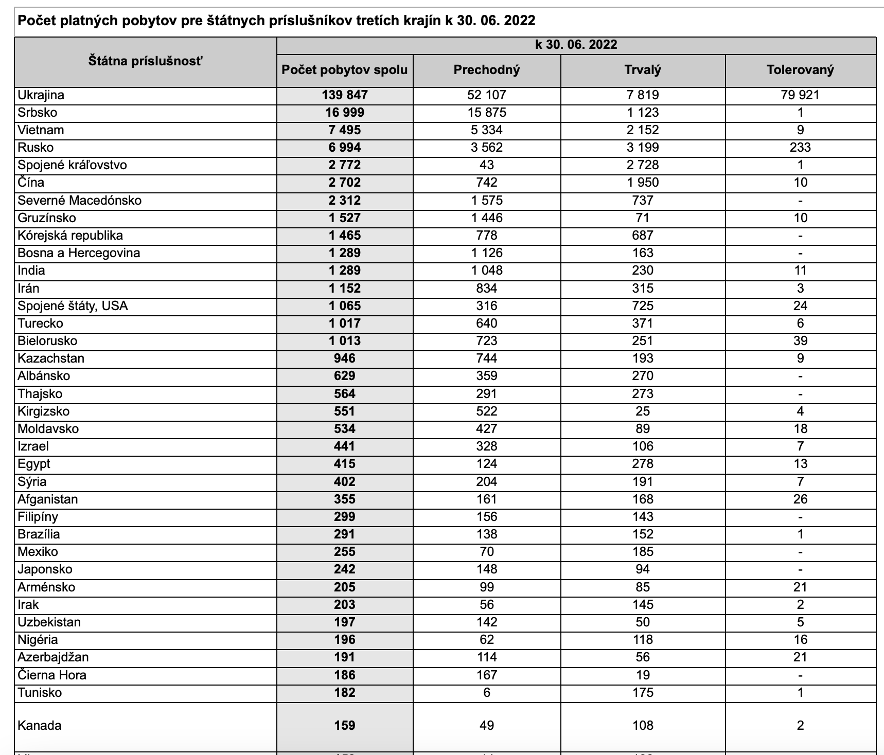 Ментовка опубликовала данные по иностранцам за первые 6 месяцев 2022 года: https://www.minv.sk/?rok-2022-1 Скрин статистики за предыдущий год можно посмотреть здесь >>851583 Украинцев прибавилось, но не так много как я думал. Тут писали >>864774 про 250 тысяч. На самом деле согласно новой статистике всего 95 тысяч.