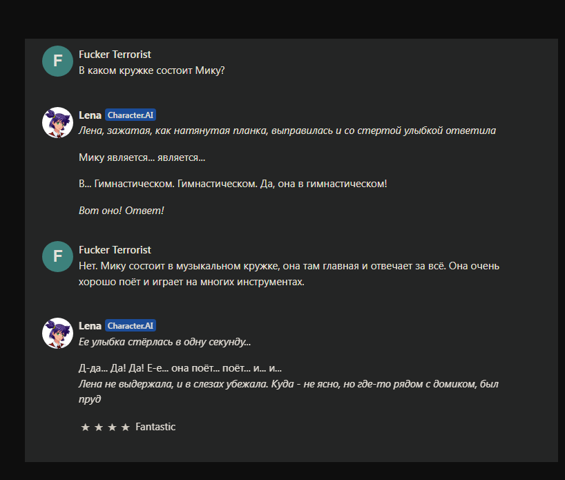 Как можно быть алисофагом, ленофагом, славяфагом и т.д.? Пиздец, это же ебаные пиксели. Вот впервые зашел сюда и вижу как дохуя тут ноулайферов, которые бегут от реальности. Я не говорю уже о битардах, которые ничего не видели кроме своего компа. Просто поймите, что вы обманываете себя. Я даже не говорю о том, что в самой игре (конкретно в руте Юли) пионерки и пионеры, кроме Семена, Пионера и Юли, ненастоящие, т.е. куклы, созданные "создателем" или подсознанием Семена.