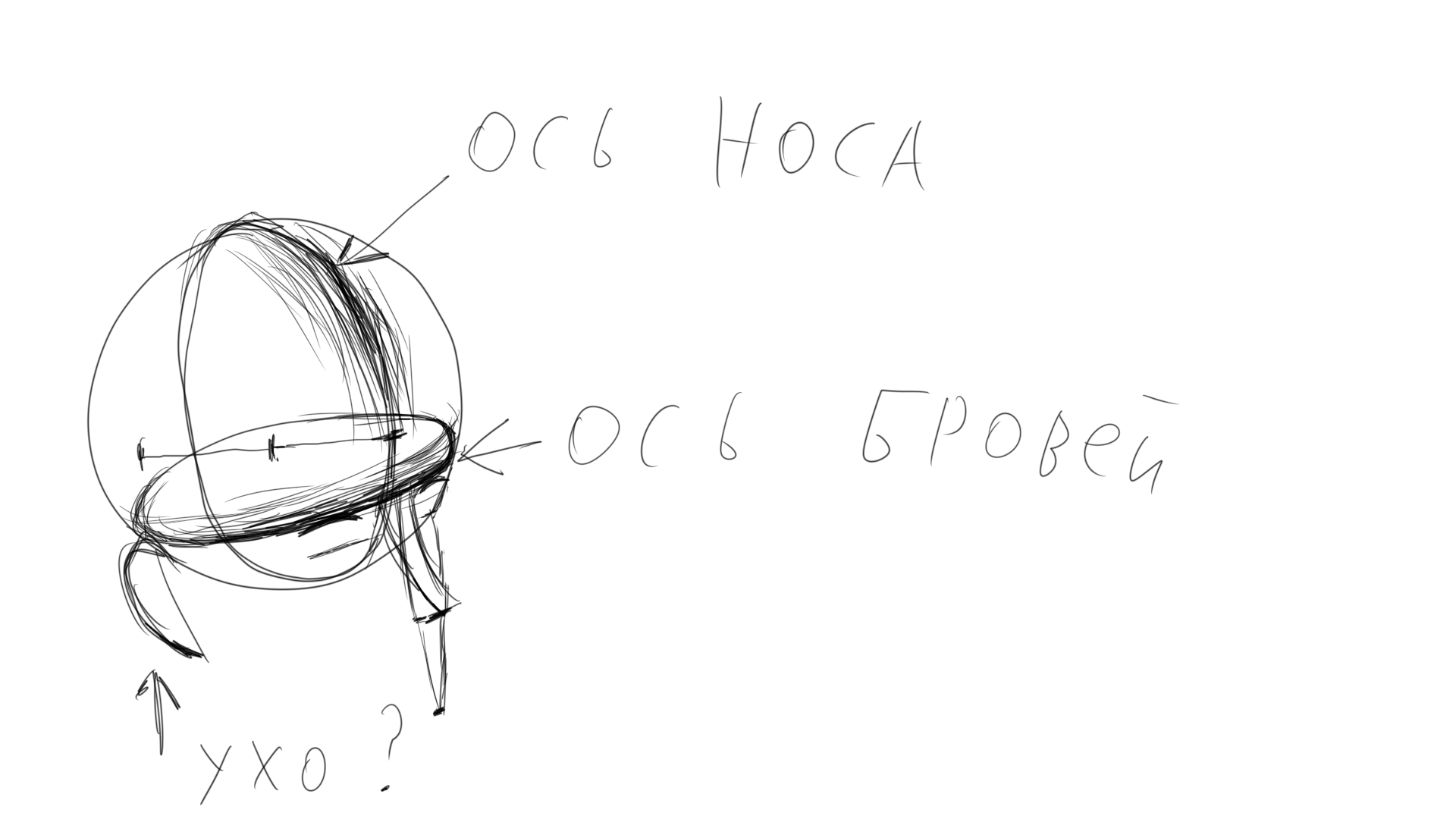 Как вы мацаете объем головы, шаром или кубом ? Получается только шаром, чтобы именно мацать центральные линии. А как ухо найти, расстояние от центра носа до окончания брови и также до уха ?