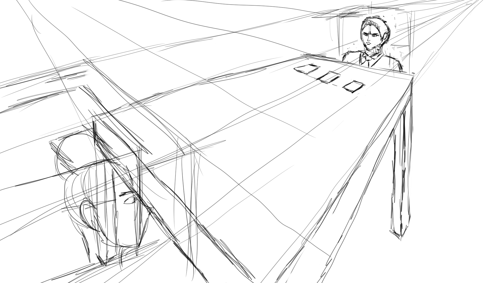 В общем так, посоны, я кажется понял как пынямать хитровыебанную перспективу. Надо натренировать воображением ощущение направленной на пространство рисунка камеры и типа смотреть через неё.