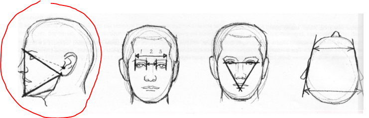 От обрубовки я прям тащусь, реальная тема благодаря которой я рисую более-менее верную голову за пару минут. Кстати, обратите внимание на то что в боковой перспективе глаза получаются не совсем равных размеров.