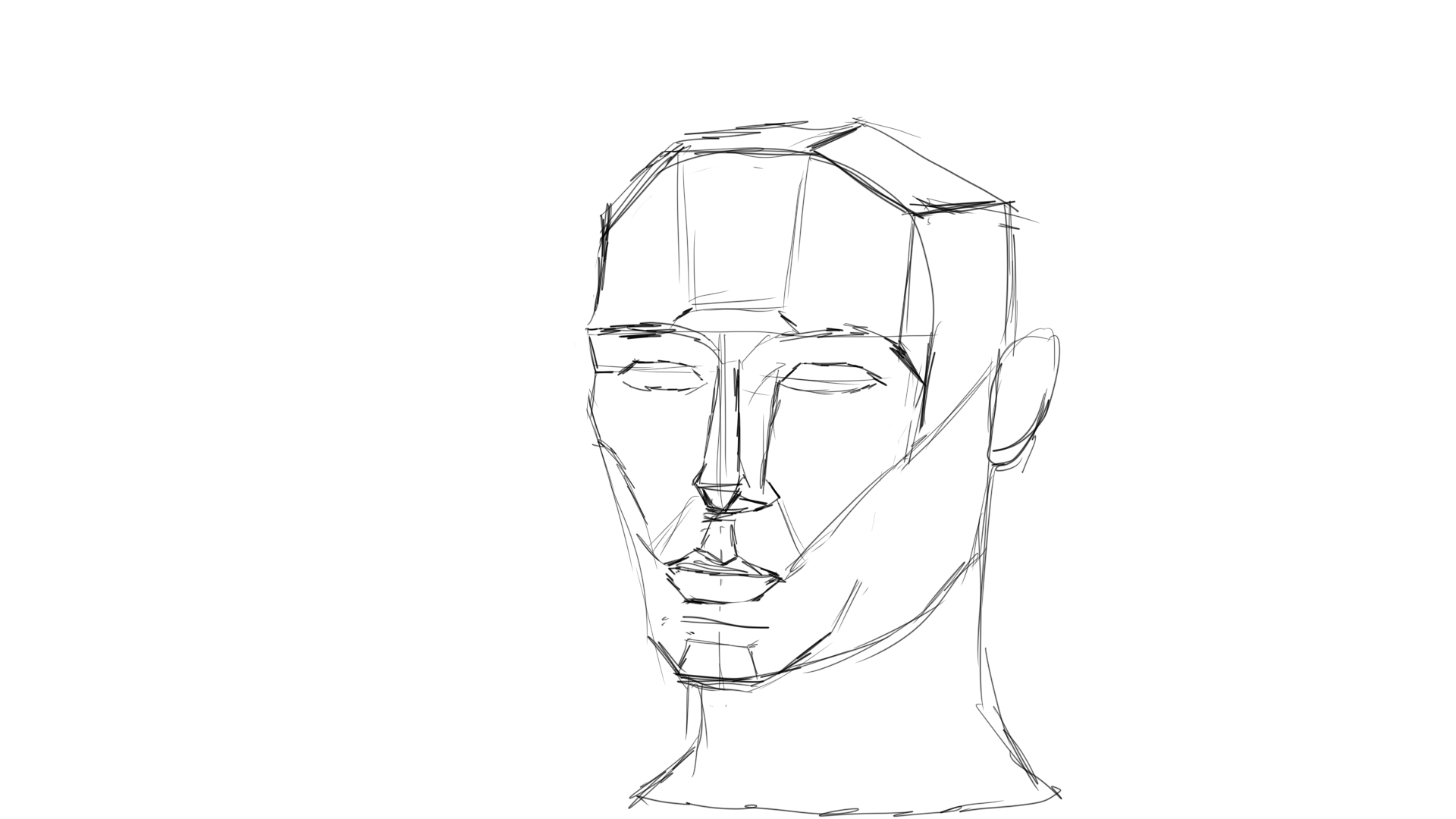 >>1147787 В общем такая тема - чтобы понять структуру головы надо вразуметь разрубовку. Разрубовкой у крутых рисовак кличется такая гранёная башка https://www.artstation.com/artwork/6a0Par Что надо с ней делать? Открываешь, смотришь, делаешь на своём рисунке такие же грани, да так чтобы вся конструкция была симметрична и грани не пидорасились.