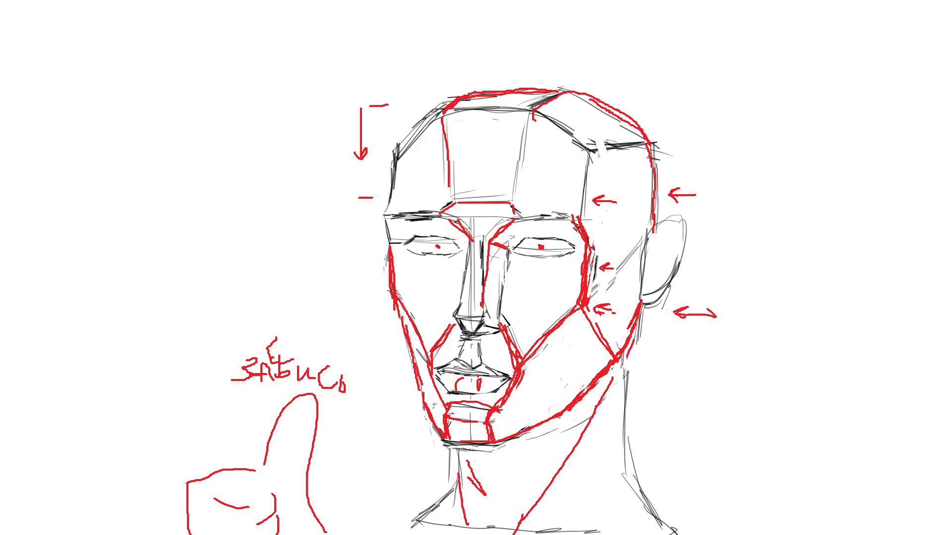 >>1148046 обрубовка предназначена для того, чтобы давать понимание плоскостей и того, как на них ложатся светотени на реальной голове. использовать её для построения с нуля - оч хуёвая идея, не выведешь. лучше отбивай построения черепа и учи основные плоскостные кости, то бишь любимый всеми анат.