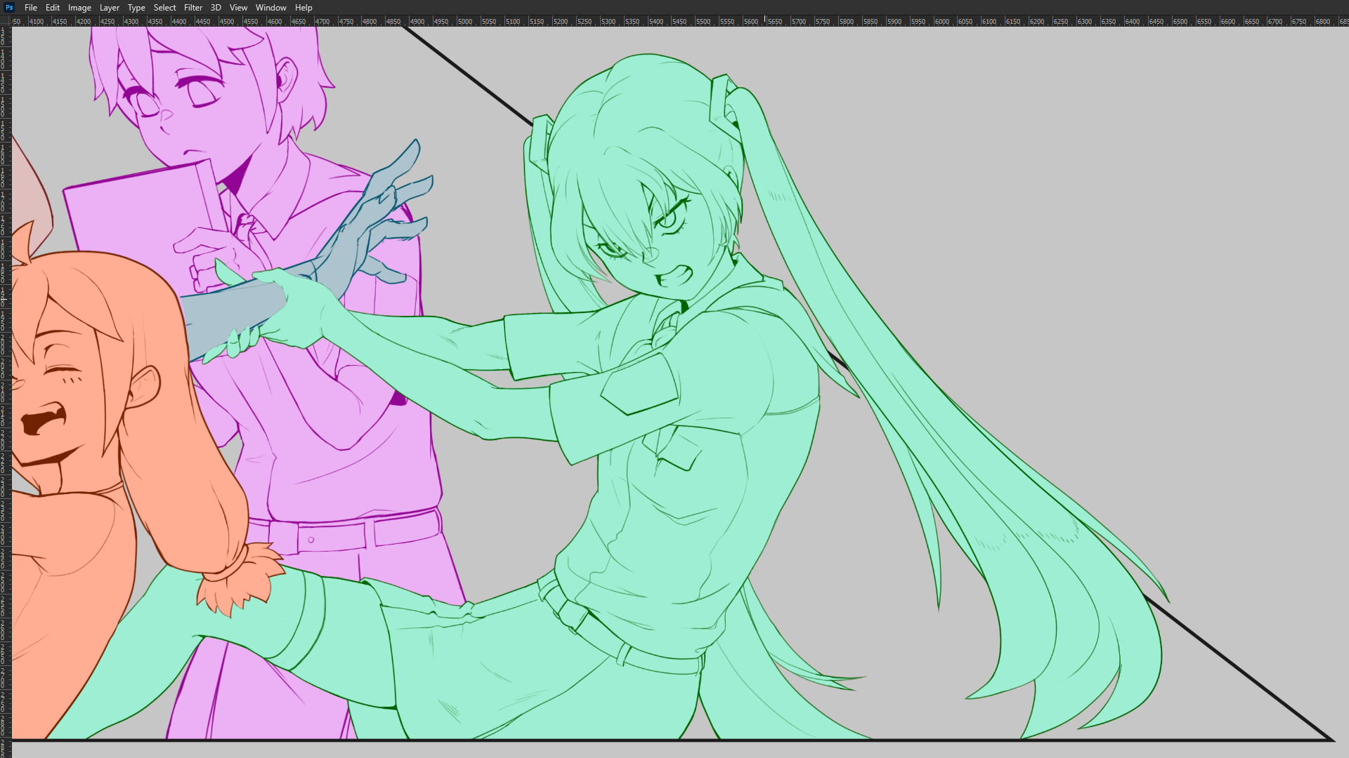 2. Не совсем, родные цвета слишком тёмные, плюс иногда встречаются спорные решения. Например как у Виолы, которой налили серого цвета в тень. Может это должен был быть синий рефлекс от волос или рубашки, но по итогу получилась серая грязь. Я скорее смотрю на отношение их друг с другом. У Мику светло-желтый оттенок, у Лены более розовый, у Ульяны тёмно-красный , у Семёна грязно-жёлтый и т.д.