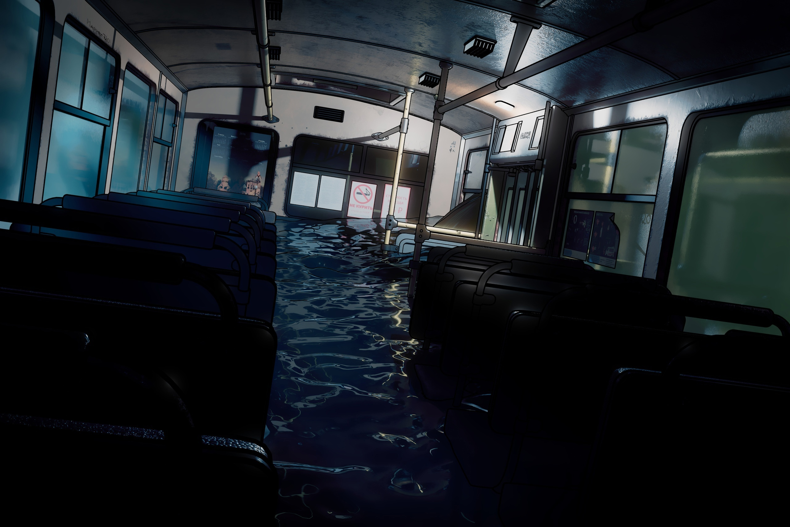 "Но порой я вижу пути-дорожки, тянущиеся из этого потенциального будущего." "Мёртвую рыбу, пятна нефти на воде, и…" "Меня не смущает боль, запах крови, сушняк от промедола и вечный сучий промозглый холод в отсеке." "А вот обломки дерева, прибившиеся к быкам Дворцового Моста — да." "Сбивает с такта." "И совсем — с ног, когда я нахожу спуск к воде и вижу выцветшие от воды, грязи и времени, некогда алые паруса." "Такого быть не должно." "Неправильно." "Это я! Я виноват. Я создал реальность, в которой война неизбежна. Я её заслужил." "А вовсе не прячущаяся в убежище Ассоль." "Ассоли семнадцать лет, она прекрасна и училась последний год изо всех сил, чтобы поступить в избранный ВУЗ, работать по профессии." "Она старалась как могла, моя маленькая прелестная Ассоль." "Пусть в её жизни были и глупости, и кашель от сигарет, и желание умереть от первых доз алкоголя, и нецензурная речь в общении с подругами." "Но всё же она была чистой и светлой девочкой, Ассоль." "Почти как Мику." "Только Мику живёт в мире, где Союз настолько обскакал остальную планету, что одним присутствием давит в зародыше конфликты, поэтому она неизбежно выпустит сингл, за ним другой, потом альбом." "Её имя будут скандировать тысячи, а подпевать в куплетах — миллионы." "Ассоль же получает пакет с индивидуальный рационом питания за номером два, чтобы в неверном свете керосинки съесть его под учебник." "Ассоль блондинка, но из-за вечного пребывания под землёй её белокурые локоны померкли и стали почти прозрачными." "Или брюнетка, коротко стриженная из-за расплодившихся в убежище вшей." "А, может, рыжая." "Ассолей миллионы, и каждая из них солнышко, замечательная умничка с большим будущим." "Время от времени я пытаюсь понять, как мы оказались именно здесь." "Или, может, это просто сон?" "Буквально за два месяца до контрудара объединённых сил в сети началось повальное увлечение нейросетями." "Вычислительные кластеры научились генерировать изображения сумасшедшей красоты, но всегда спотыкались на пальцах." "А опытные сновидцы знают, как победить кошмар и перехватить контроль над ним." "Пальцы, да." "Ты не сможешь разглядеть их во сне, пересчитать, убедиться в наличии всех фаланг, ногтей и сухожилий." "Стало быть, весь мир восторгался снами нейронных сетей." "Но я не сплю." "Затянувшись ещё раз, я спрятал окурок в карман и поднял ладонь перед собой, заслоняя видимые теперь звёзды." "Световая зашумленность канула вместе с АЭС, зато очень в моде стали фонарики-динамо." "И звёзды, да." "Но кто сейчас смотрит на звёзды?" "Даже я не смотрю. Мне больше интересны пальцы — все на месте. Перчатка та же. Даже сигаретный прожиг между большим и указательным пальцем." "След от безуспешной попытки проснуться болел потом две недели, заживая." "Но я точно знал, что не сплю." "И, стало быть, алые паруса реальны." "И синие киты, плывущие меж зданий." "И птицы, собирающиеся в ещё больших птиц в процессе мурмурции." "И…" vo "Да хватит тебе ныть, нюня челкастая. Что тебе, ИРП невкусно? Или работа не радует?" "Вкусно. Да что уж там, куда вкуснее ежедневных макарон/гречи/риса с сосиской." "И патруль акватории — работка попрестижнее охраны чужих сигарет с выпивкой." "У меня даже табельное есть, называется «Иж-79М», он же в просторечии… кхм." vo "Убийственная ирония, не поспоришь. Но фига ли ты тогда плачешь как девочка Надя за десять туманов?" th "Ассолей жалко. Они не дож
