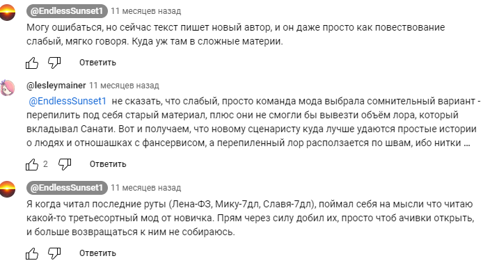 >>1225538 А ну, сейчас смотрю амбалы новую версию выкатили и там как раз про Лену, Ольгу написано, что подвели их поведение под действующий концепт. Надо будет проверить