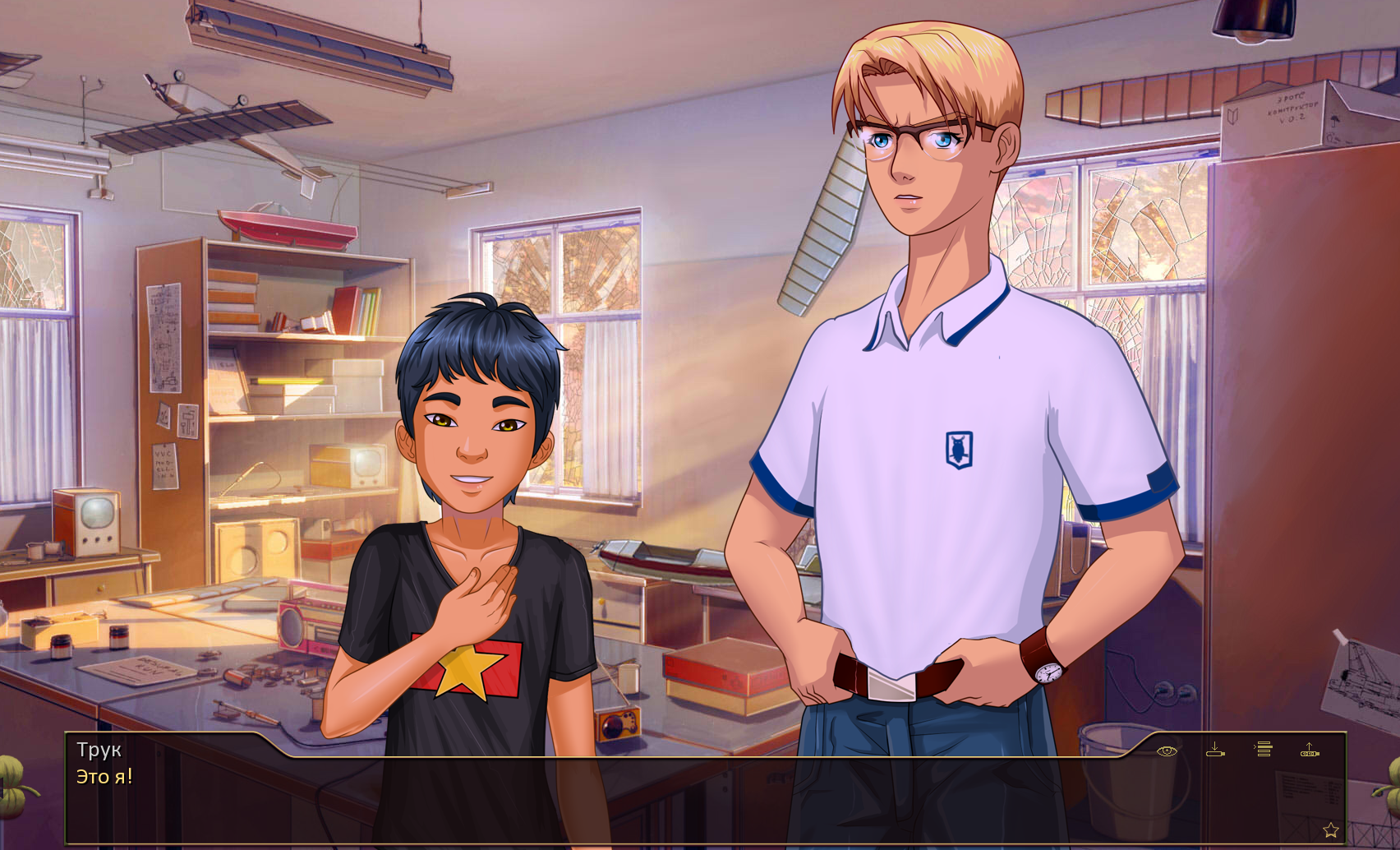 Две аццылки в одной. Во-первых, старый фейковый скрин, где Мику жаловалась, что не может сексом трахаться, когда кот на неё смотрит. Во-вторых, один из разработчиков в команде фигурировал под псевдонимом Кот и имел прямое отношение к операторской работе, что и было увековечено.