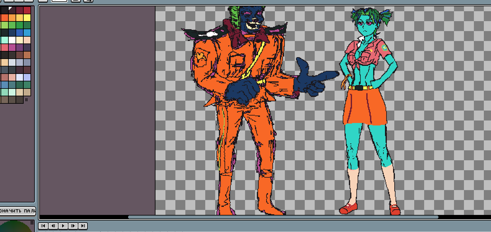 >>1244847 >Убедительная просьба делать анимки разложенными на кадры. Пример (шаблон) я прилагаю. Может сразу каждую анимацию в гифке хранить будем? Асеспрайт всё равно их если надо сразу же распиливает на отдельные составные части(ты же там их же даешь?) >Картинки можно разделить на: игровые миниатюры (они же пиксельарты), диалоговые спрайты как в вн (только не из вн, а перерисованные; и обязательно должны быть порнушные варианты) и полноценные арты-сцены. Только ты это, погодь. Чтобы по сто раз не переделывать картинки нам нужны конкретные задачи, под которые мы анимируем и рисуем, иначе помножим огромный труд на бесполезность. Я предлагаю сделать небольшую демку на 1-2ух локациях, где будут какие-то работающие механики для демонстрации и анимации(аки та симпатичная демка в шапке рпг треда). Вот только надо сперва определится что именно мы делаем. Это будет игра под закосом на лонурпг? Может быть как в дискоэлизиуме? Или свои механики взятые там и сям и придуманные с нуля? Или что это вообще будет?