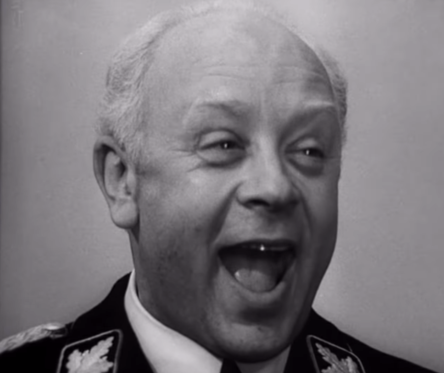 6) Ольга: Семён отдает честь на линейке перед Ольгой, а та улыбается.