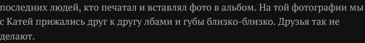 >>1249809 >Расстаются они нормально, без конфликтов и романтики. >Оля узнает кое-какую правду о Семене. >Следующий контакт - лето 1987 - та смена, где окончательно сформировывается влюбленность Ольги. Влюбляется она НЕ В МАЖОРА, а в гостя Всё-таки не педофилка.