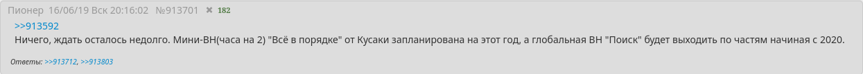 >>1280253 >Но просто напоминаю, что Кусака блять управился за джва года! Это да. Да даже БЛ разрабатывалось лет 5. А сейчас вообще всё разрабатывается пиздец как медленно. Все эти ЭОНы, Инопланепионерки уже по десять лет в разработке висят, ЛМР лет 8 и так далее. Это окружающая обстановка лишает вдохновения или все постарели и стали медленно работать?