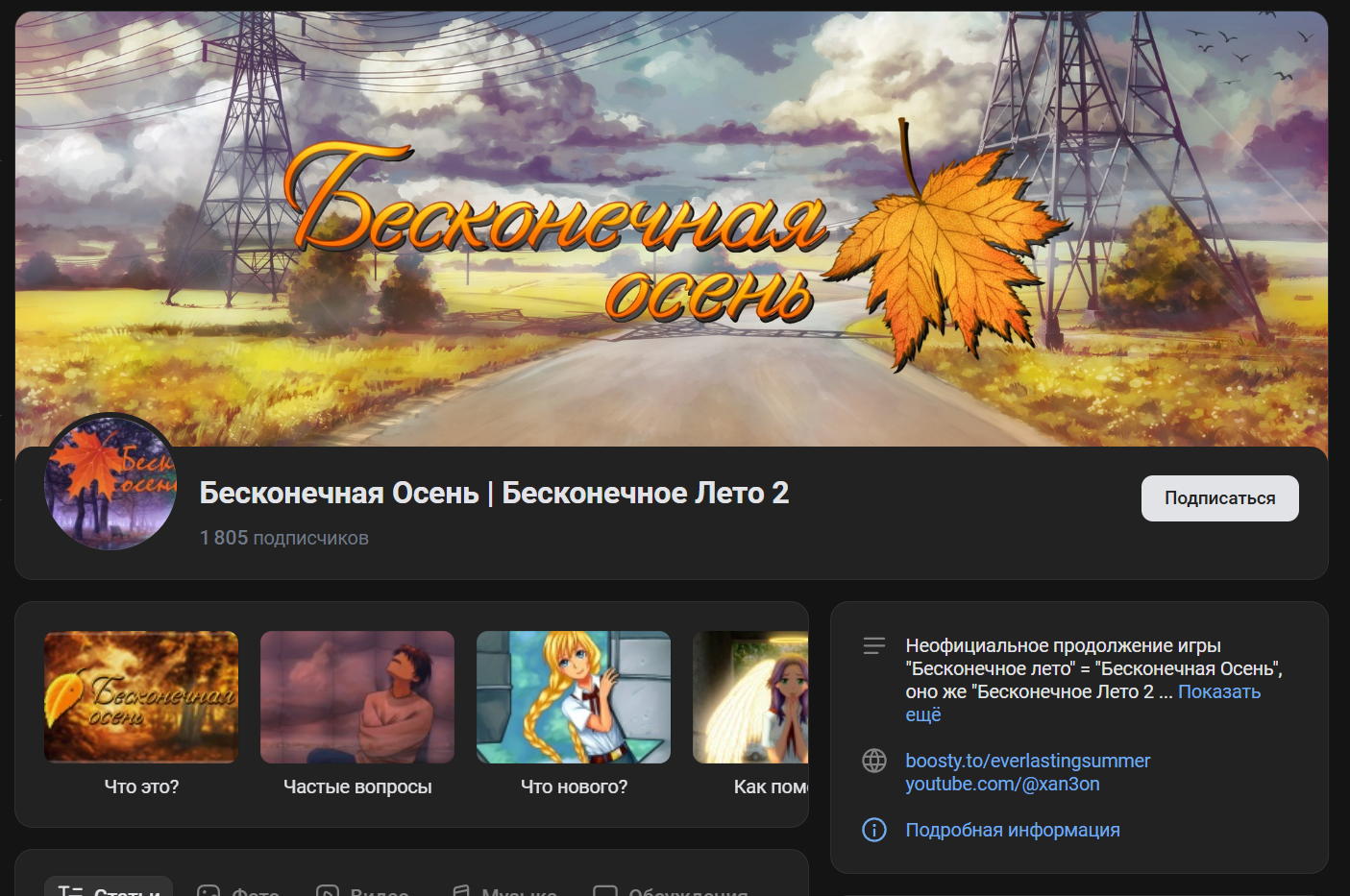 Вообще не хватает какого-то "взрослого" переосмысления Лета, без Совёнка, с теми же героинями, но ИРЛ, с тягучей всж-атмосферой, с более серьёзной драмой. Типа как Вонни по отношению к Винни Пуху. Осень у нас действительно один из лучших сезонов, Пушкин был прав. Но мододелы никогда такого не сделают, им интереснее про Совёнок в сотый раз сочинять, или про путешествия по параллельным мирам.