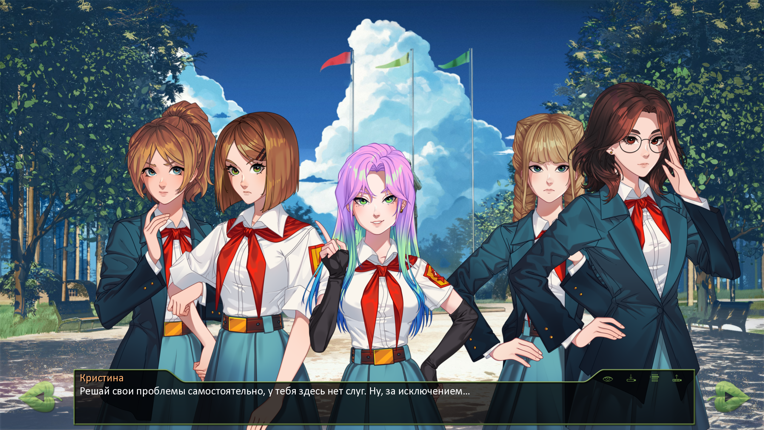 >>1267754 > А что ты чувствуешь, глядя на новых пивонеров? Красная (Аня вроде) - пацанка на спорте Мейби - стерва-альтушка Вожатая - спокойная размеренная баба-мать Голубая Мила - спокойная, скромная, тихая девочка-припевочка Славя №2 - Славя, тут прям явно с неё списано, но впечатление что менее активная. Кристина - деловая девка себе на уме, это и по одежде, и по причёске, и по позе видно