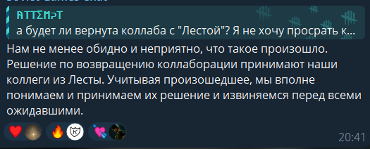 В связи с произошедшим нами было принято решение, что на данный момент я ухожу из публичного поля и сосредотачиваюсь только на разработке, а также передаю часть своих обязанностей другим членам команды.