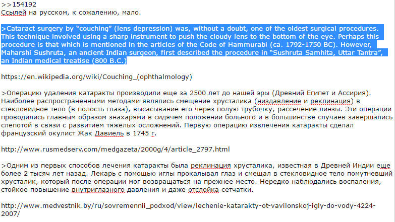 А индусы, "лечившие" катаракту при помощи колючки с кактуса когда все остальные ещё были долбоёбами?