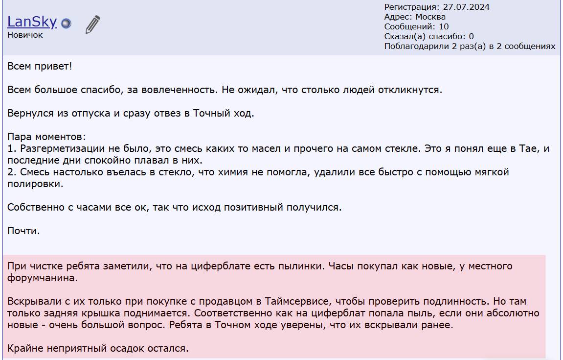 >>1897927 Никогда не думал, что куплю китайские часы. И вот сегодня пришëл такой хомажик. Давно хотел попробовать что-то в таком форм-факторе. Пллюс vh31 (механика на nh-35 и обычный кварц мне совсем неинтересны). Первые впечатления: Заявленный синий цвет цифера скорее матово-серый с синим оттенком. Стекло - изогнутый сапфир, довольно сильно бликует, но читаемость приемлемая. Корпус разочаровал. Ни одной острой грани. Всë замылено. При этом сплошная полировка. Ремень, хоть и пахнет кожей, думаю долго не протянет. А вот бакля, хоть и кажется от других часов, сделана интересно. Она имеет шлифованную поверхность с чëткими гранями. По форме, наверное, подошла бы больше к РАМ. При рассмотрение при 3х кратном увеличение, претензий к циферу не возникло. Печать точная. Мусора не замечено. А стрелки вообще порадовали. Хорошо и ровно отполированы. Заусенцев не видно. Частота движения секунды напоминает низкочастотную механику. Люм очень слабый, непонятно зачем он здесь. Когда заказывал, думал, если будет совсем всë плохо, то отдам кому нибудь. Пока оставлю. 4000 не жалко. P.S. На руку больше 17см, без примерки брать не рекомендую. На мои 16,5 ,вроде, норм.