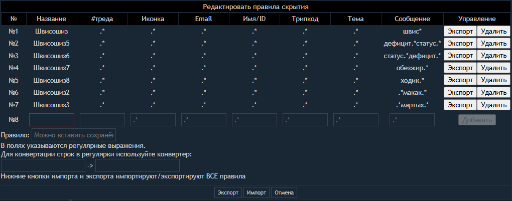Если лень настраивать правила скрытия — ознакомьтесь с жаргоном и по-возможности игнорируйте горемычную вниманиеблядь, он с ваших харчков и простыней в попытках что-то ему доказать кормится уже не один год.
